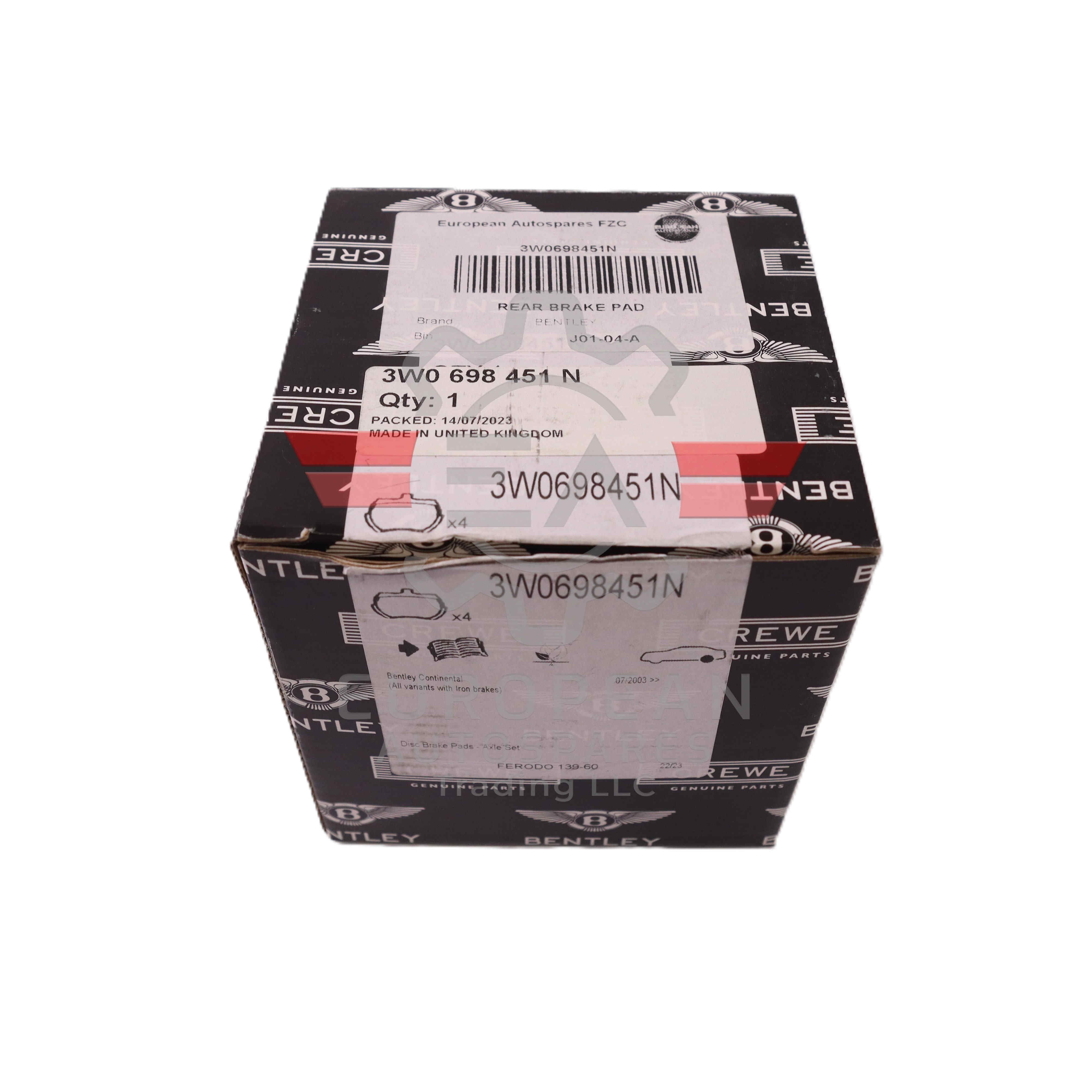 Elevate your Bentley's performance with the Genuine Rear Brake Pads specifically engineered for the iconic Continental GTC and Flying Spur models, spanning the years 2003 to 2018. Bearing the OEM part number 3W0698451N, these premium brake pads are crafted to meet Bentley’s exceptional standards, ensuring unparalleled quality and performance.